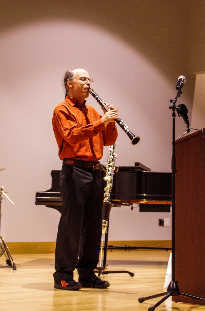 After the music, and a quick scene and costume change, Kelly Silliman from NCFA welcomed the crowd and introduced me. I read a handful of poems from each of the two poetry books, and then I read another ten newer poems about relationship, family, and identity. After the poetry, I played a solo clarinet piece, “Sun Singer,” written by Paul Winter.