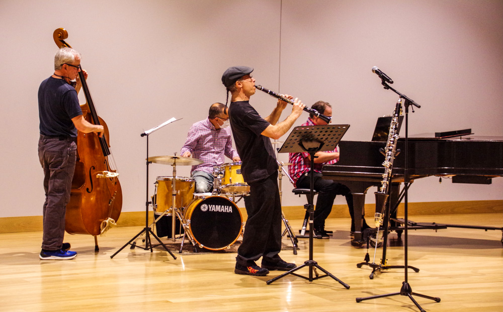 Now’s the Time Jazz Quartet consists of: John Power on upright bass; Chris Koh on drums; Bill Winslow on piano; and Michael Favala Goldman on clarinet and bass clarinet. Our group also has a sextet version with trumpet and saxophone added. Most of us have played together for well over a decade at various venues around the Pioneer Valley, like Luthier’s Co-op, Delaney House, The Log Cabin, Black Birch Winery and others. We have also played First Night Northampton twice.