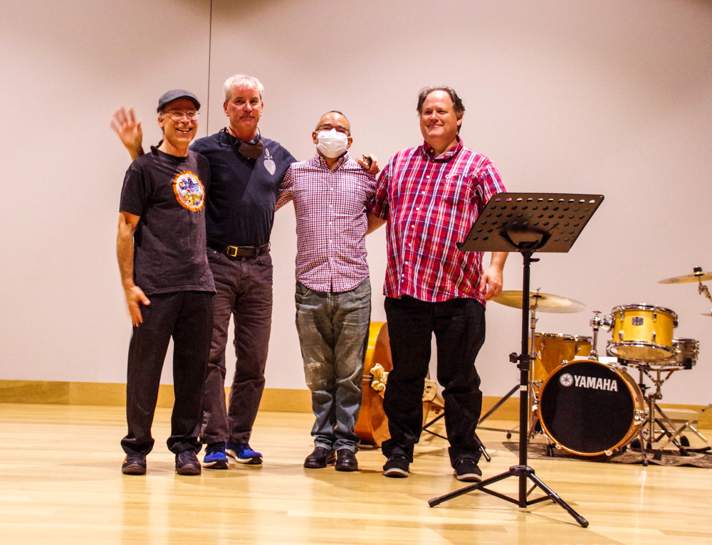 I want to thank Kelly and the NCFA for being incredible hosts. Besides use of the sweet baby grand piano and the spacious lobby (which my family filled with tables of books and a raffle), I am thankful for use of the FLEX auditorium, which has such resonant sound that the band and I were able to perform without amplification. Thanks to the work of my family and friends for good advice, and for help with set up and break down. Thanks to my band for a superlative performance, and to NOM for the recording. And thanks to friends and strangers who came to listen and to share an inspirational, memorable evening.